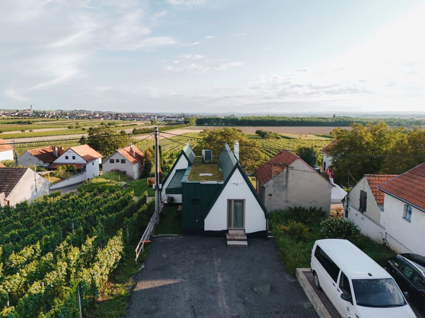 Název MALVERINA propojuje osobní příběh s místem – skrývá iniciály majitelky i tvar samotné stavby, která připomíná písmeno M s jemně ukrytým A. Zároveň odkazuje na moravskou vinařskou odrůdu Malverina, která roste přímo za sklepem spolu s Pálavou – a dává tomuto místu kořeny nejen architektonické, ale i vinařské.