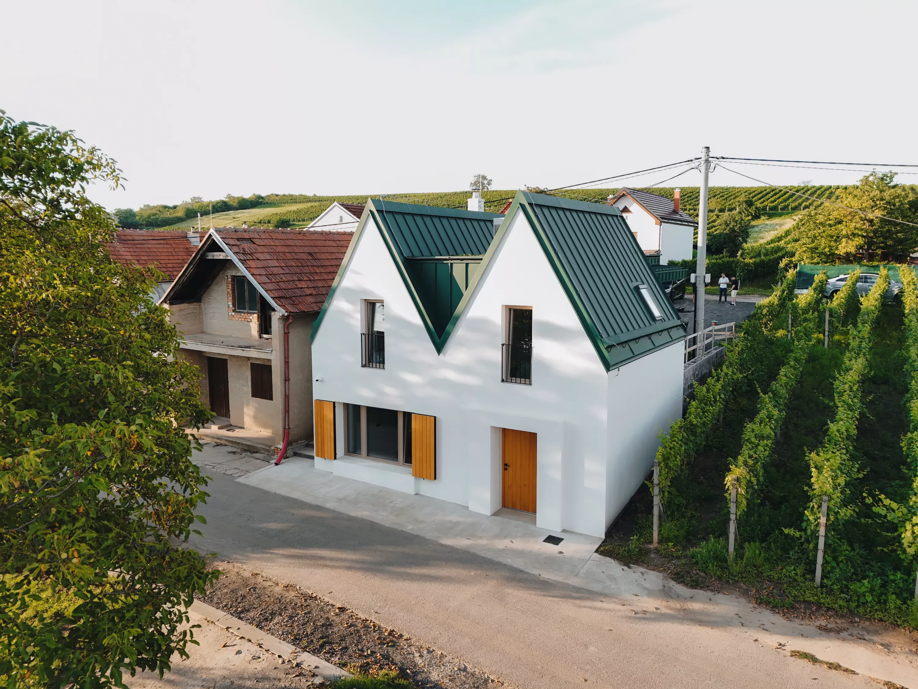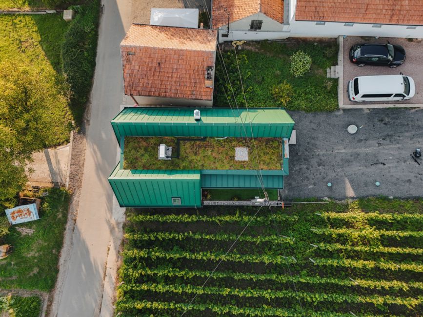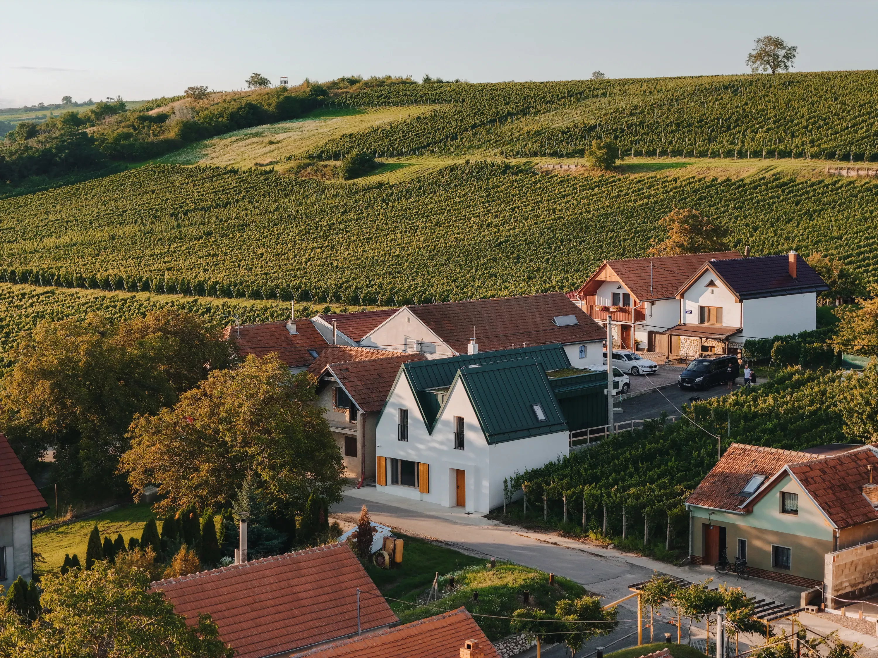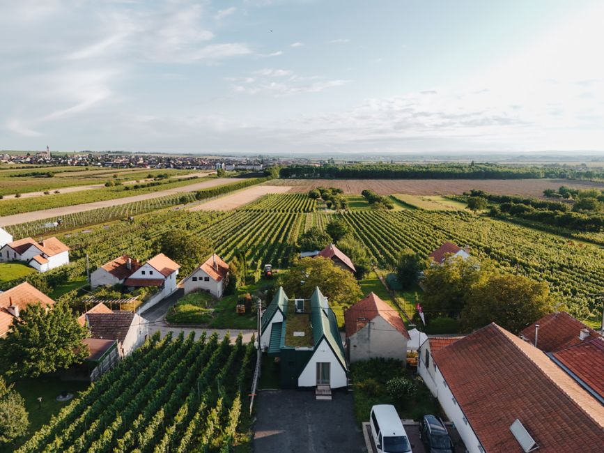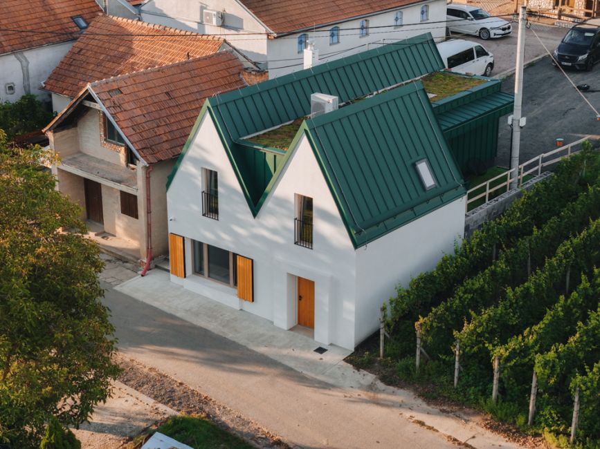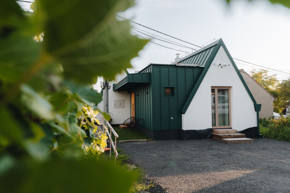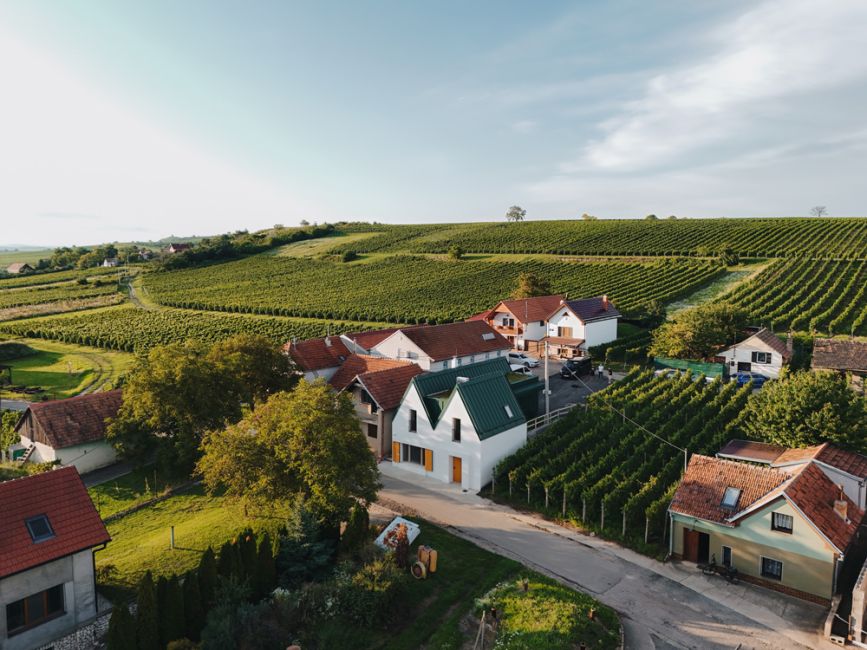 Název MALVERINA propojuje osobní příběh s místem – skrývá iniciály majitelky i tvar samotné stavby, která připomíná písmeno M s jemně ukrytým A. Zároveň odkazuje na moravskou vinařskou odrůdu Malverina, která roste přímo za sklepem spolu s Pálavou – a dává tomuto místu kořeny nejen architektonické, ale i vinařské.