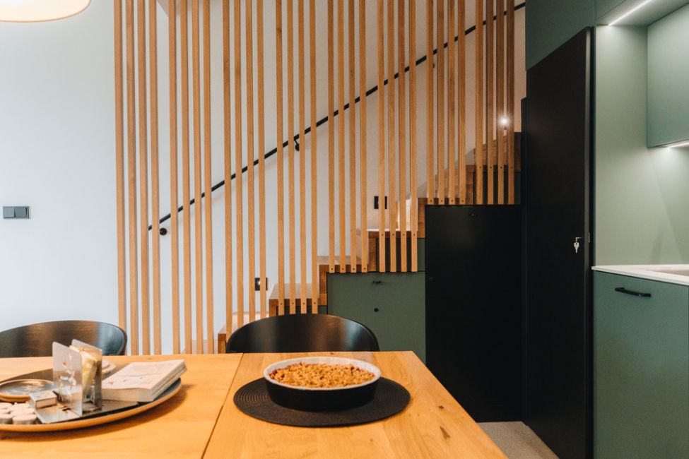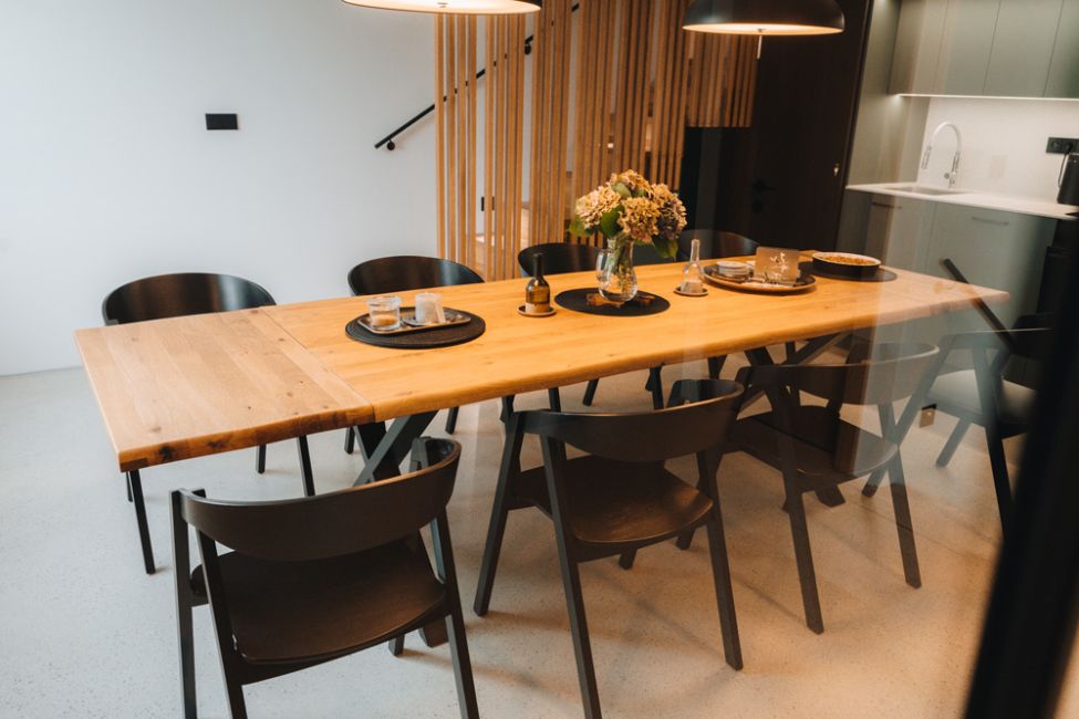 Interiér je navržen s důrazem na jednoduchost a funkčnost, aby se zde hosté cítili přirozeně a uvolněně hned po příjezdu. Každý detail má své místo a společně vytvářejí harmonický prostor pro odpočinek i společné chvíle.