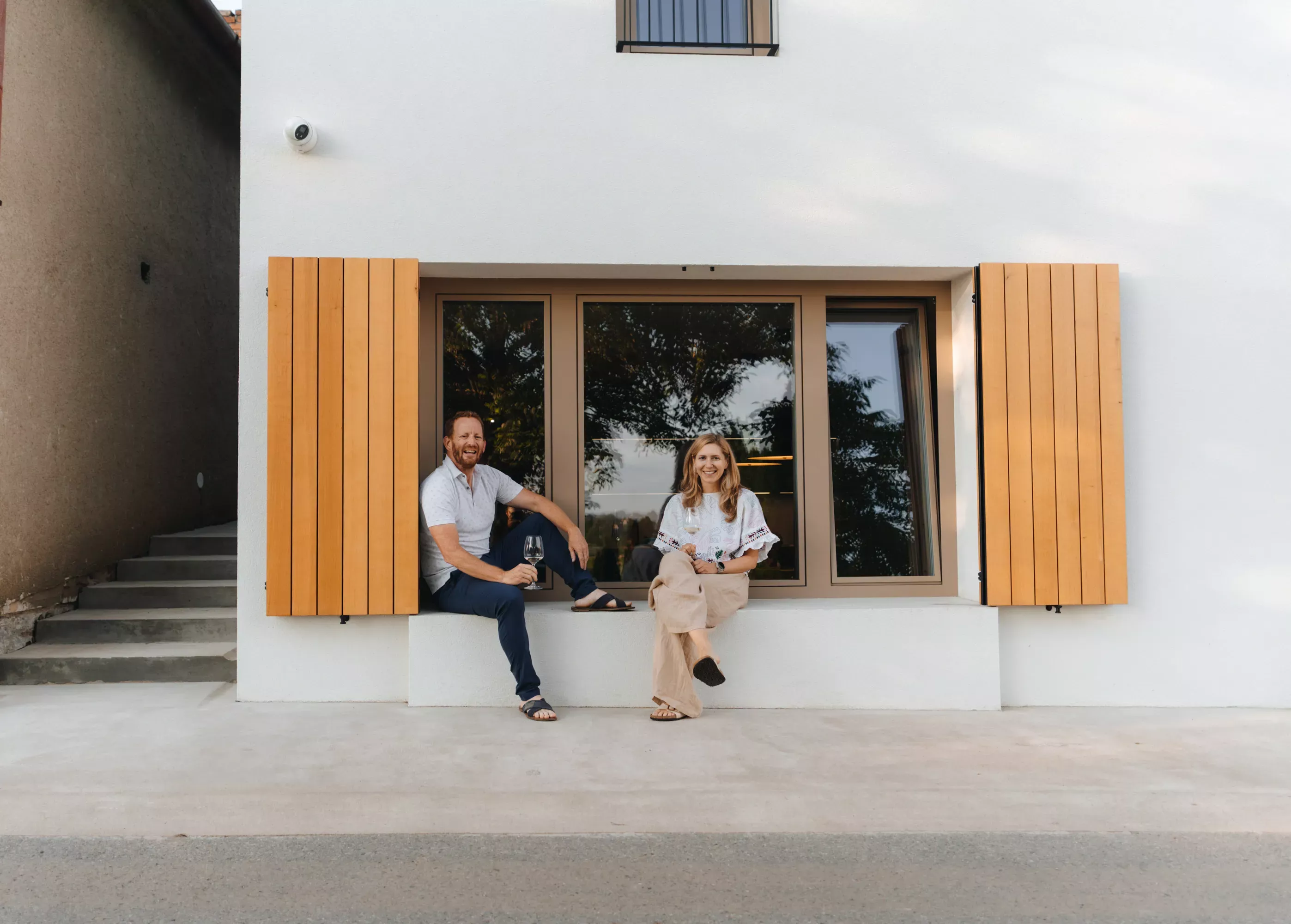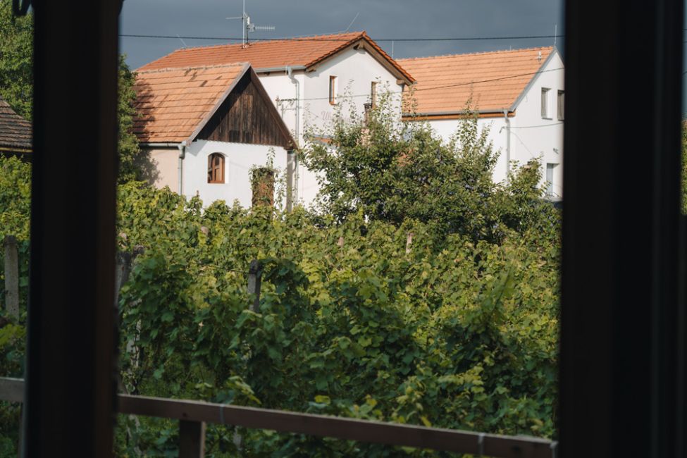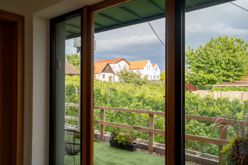 - Venkovní sezení na parapetu okna s výhledem na Pálavu