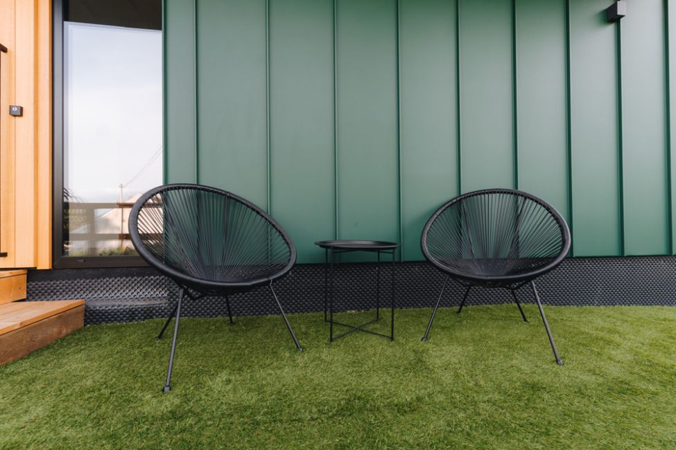 - Provizorní terasa se 2 křesílky a stolečkem