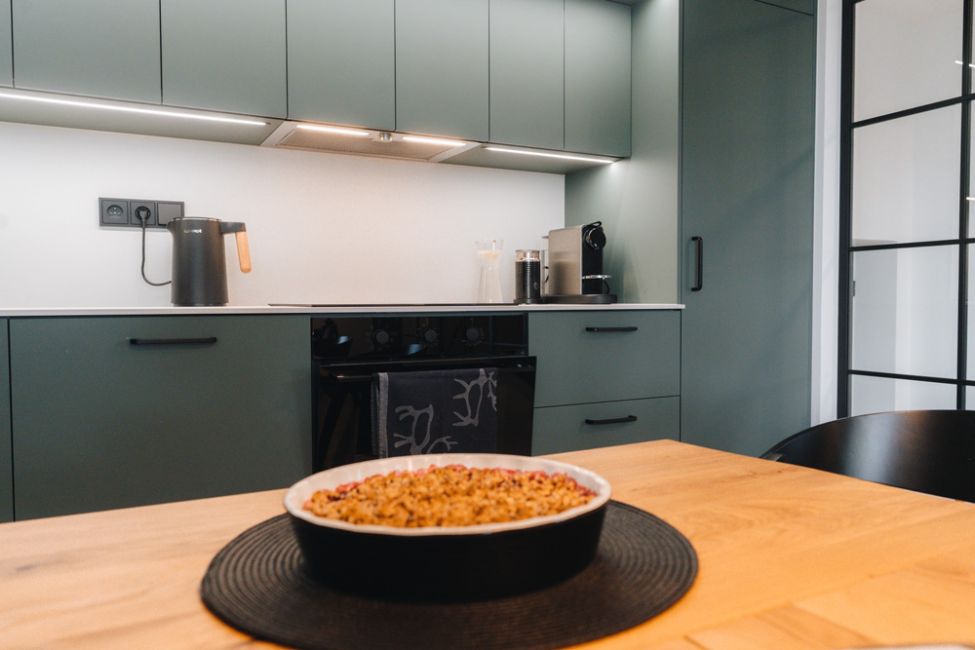 „Velmi dobře a vkusně vybavený prostor, který poskytuje vše, co může člověk potřebovat: 2 ložnice s koupelnami, nadprůměrně vybavená kuchyň s posezením, dostatek prostoru pro parkování aut i kol“